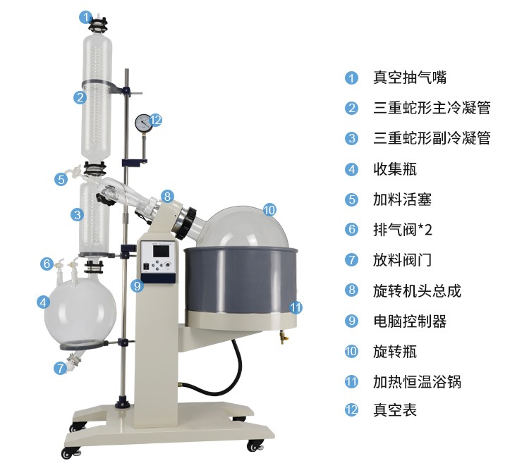 活塞式加料閥套接聚四氟乙烯加長管,可在真空狀態(tài)下連續(xù)進(jìn)料至蒸發(fā)瓶。