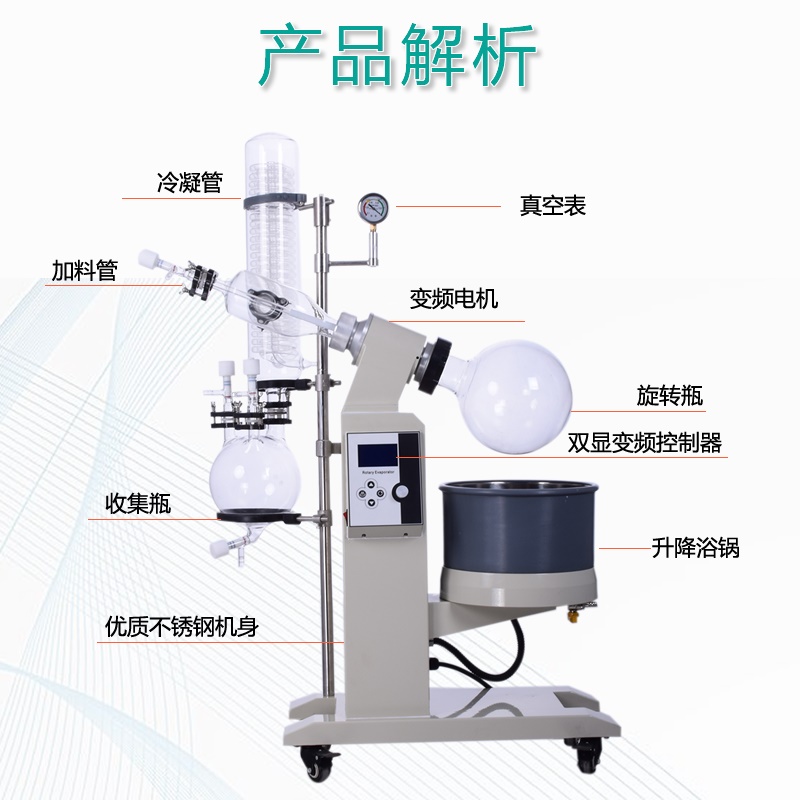 本系列產(chǎn)品使用需配套真空裝置(循環(huán)水式、旋片式、隔膜式等真空泵),冷卻循環(huán)裝置組成系統(tǒng)裝置。