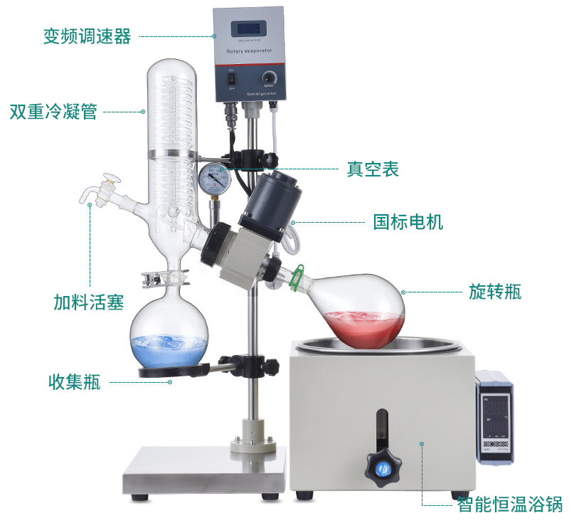 旋轉(zhuǎn)蒸發(fā)器大大提高蒸發(fā)效率,特別適合用于高溫容易分解變性的生物物品的濃縮提純,旋轉(zhuǎn)蒸發(fā)器主要用于醫(yī)藥、化工和生物制藥等行業(yè)的濃縮、結(jié)晶、干燥、分離及溶媒回收。